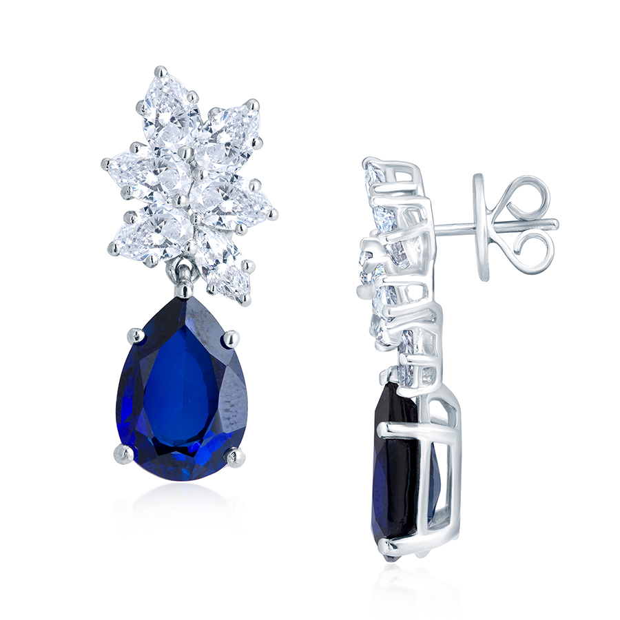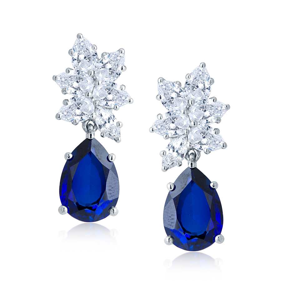 Adawna Silver & Swarovski Blue Tear Drop Earrings (NT-E-009)