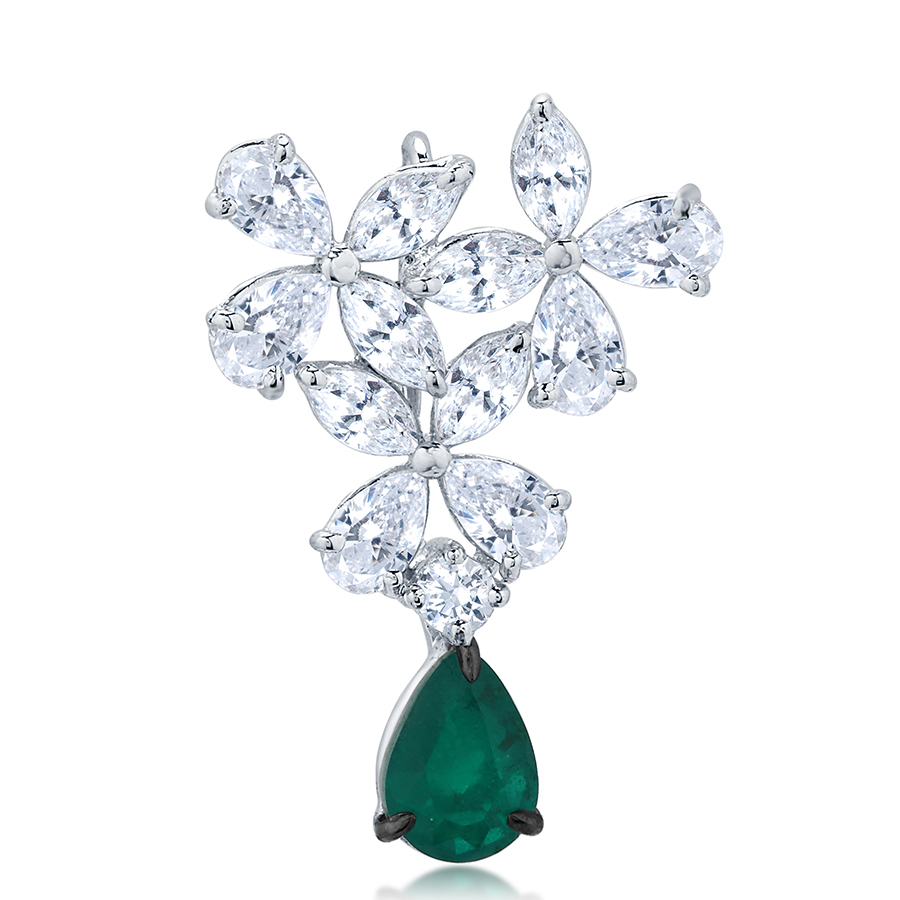 Adawna Silver & Swarovski Green Tear Drop Pendant (NT-P-005)