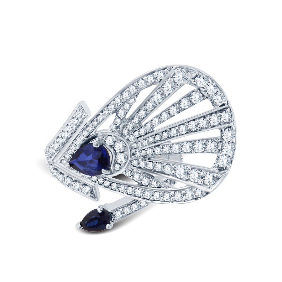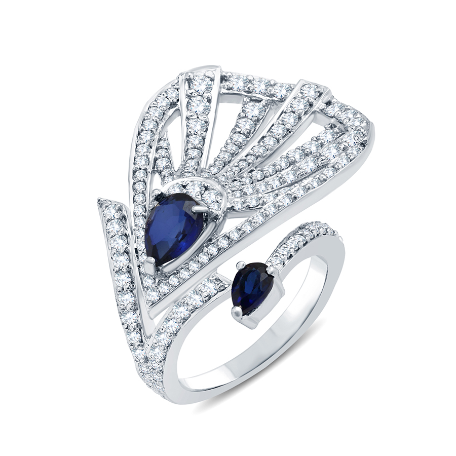 Adawna Silver & Swarovski twin Blue Tear Drop Cocktail Ring (NT-R-013)